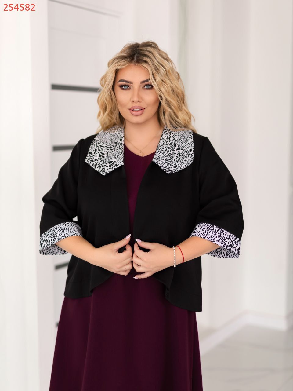 Піджак прикрашений з гарним принтованим коміром та манжетом. по рукаві . В ньому можно піти на вечірку,