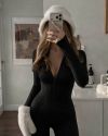 Практичний комбінезон на змійці з перестрочками, робить фігуру витонченою та виразнішою. Гарно тягнеться, сідає по фігурі, приємна тканина.
