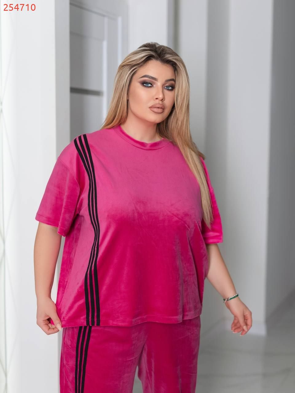 Костюм велюру – це ефектне поєднання зухвалості та витонченого шику. М’яка, оксамитова тканина з характерним анімалістичним візерунком підкреслює впевненість і свободу самовираження, а благородний блиск велюру додає образу глибини та розкоші. Такий костюм може стати акцентом вечірнього виходу або сміливим рішенням для стильного повсякденного лука, підкреслюючи індивідуальність і створюючи ауру невимушеної елегантності.