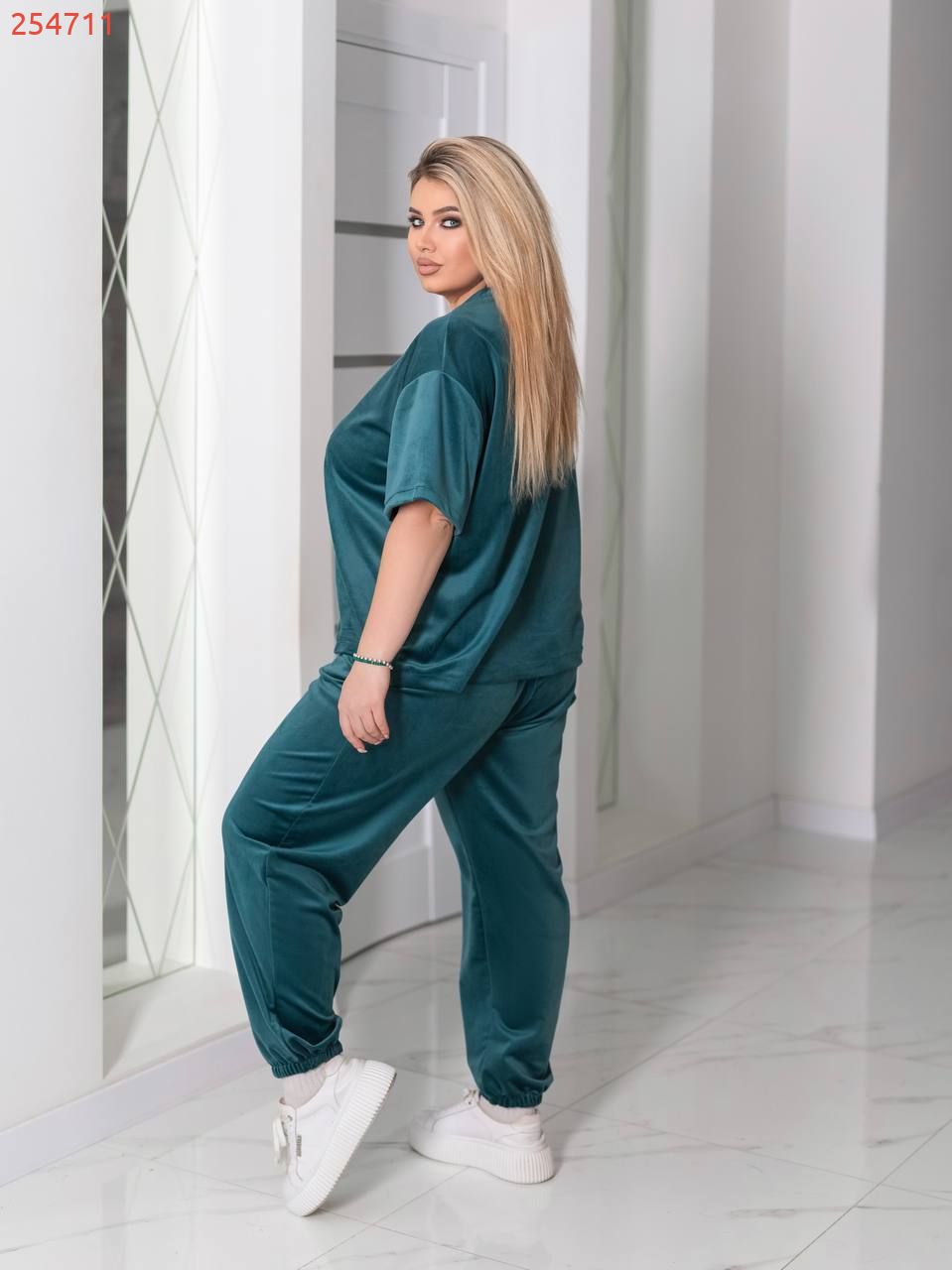 Костюм велюру – це ефектне поєднання зухвалості та витонченого шику. М’яка, оксамитова тканина з характерним анімалістичним візерунком підкреслює впевненість і свободу самовираження, а благородний блиск велюру додає образу глибини та розкоші. Такий костюм може стати акцентом вечірнього виходу або сміливим рішенням для стильного повсякденного лука, підкреслюючи індивідуальність і створюючи ауру невимушеної елегантності.
