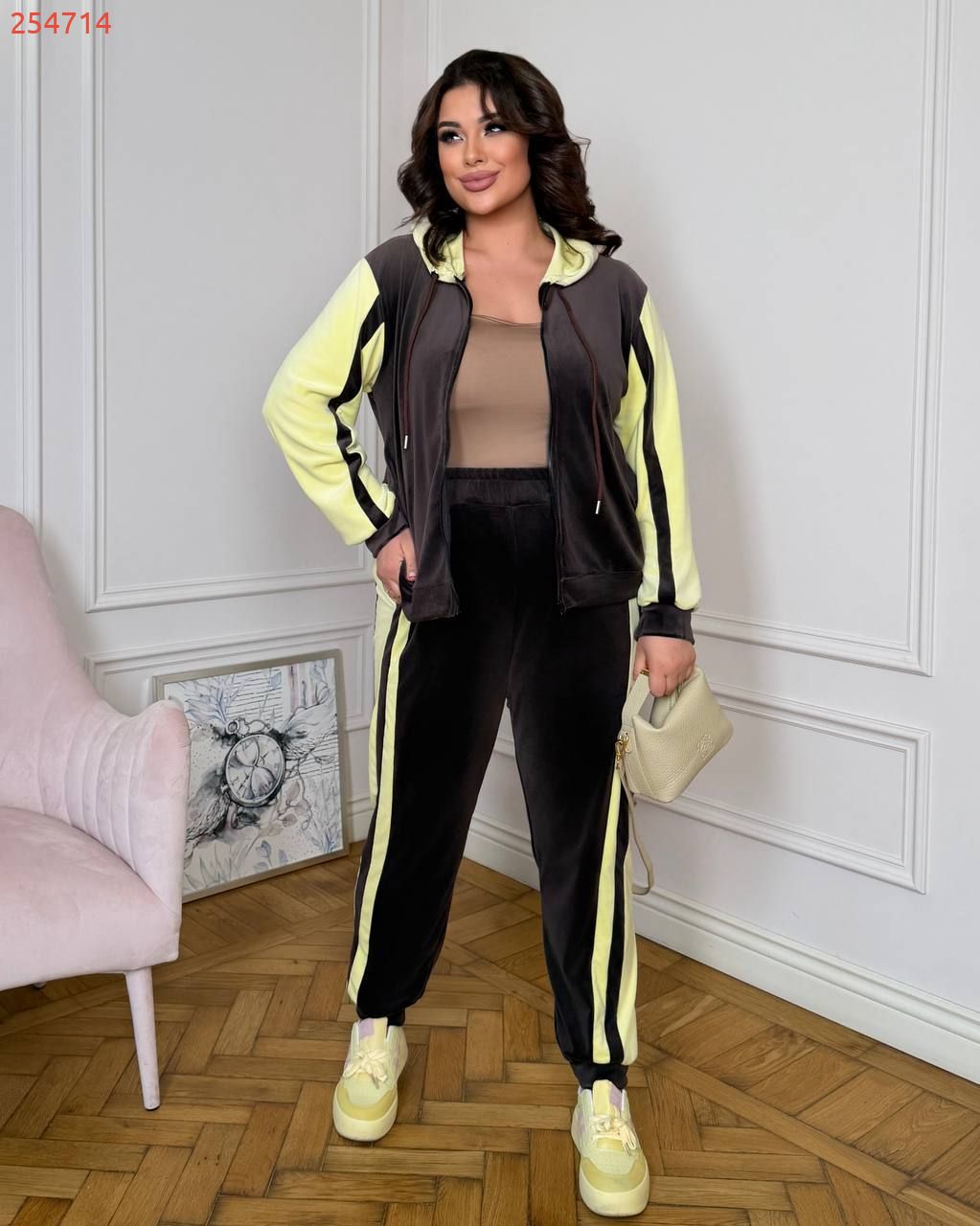Стильні штани, висока посадка, на резинці, внизу манжет, кармани . На штанах лампас. Кофта на змійці та з капюшоном