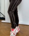 Штани висока посадка, вільного крою прикрашені стрічками , що візуально витягую ніжку.Мають еластичний пояс що забезпечує відмінну посадку та комфорт при русі. У штанах є кишені в бокових швах . На штанах стильні лампаси які, гарно поєднуються .Спортивний костюм доступний у різних кольорах та розмірах, що дозволяє вибрати відповідний варіант для кожного клієнта. У цьому костюмі ви будете себе відчувати комфортно, підійде для прогулянок, заняття спортом або просто для відпочинку