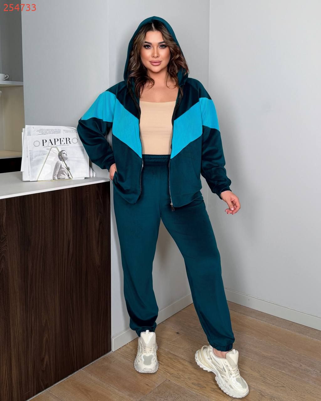 Стильний жіночий велюровий костюм – ідеальний вибір для прохолодної погоди та активного відпочинку. М’який, приємний до тіла велюр забезпечує комфорт і тепло, не обмежуючи рухів.