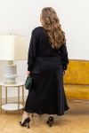 Спідниця міді довжини, крою по косій – завдяки цьому вона делікатно облягає стегна та плавно розширюється донизу, створюючи витончений, текучий силует. Посадка висока, лінія талії чітко окреслена.