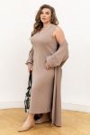 Комплект, у якому поєднуються стиль і максимальний комфорт.Максі-сукня прямого крою красиво витягує силует і м’яко підкреслює фігуру. Еластичний трикотаж у рубчик приємний до тіла, добре тягнеться та тримає форму. Довгий кардиган із поясом дозволяє зробити акцент на талії, має зручні кишені та акуратні манжети на рукавах – деталь, що додає завершеності образу. Ідеальний варіант на щодень: змінюєш взуття й настрій – і комплект звучить по-новому