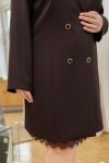 Це той самий костюм, який працює на тебе в будь-якому настрої. Подовжений двобортний жакет – із чіткою лінією плеча та класичним відкладним коміром. Силует злегка приталений, красиво підкреслює фігуру та не сковує рухів. Довжина продумана так, що жакет можна носити як самостійну сукню – виглядає сміливо, стильно і дуже впевнено. Спідниця – окрема любов. Лаконічна по крою, з витонченим мереживом по низу, яке додає образу жіночності та легкої інтриги. І головне – вона на гумці, тому ідеально сідає по талії та дарує комфорт протягом усього дня. Носи комплект під настрій: зі спідницею – для більш романтичного, витонченого образу або без неї – як самостійний жакет-сукню для ефектного виходу Це костюм, який легко адаптується під тебе – сьогодні стримано й елегантно, завтра з характером і вау-ефектом