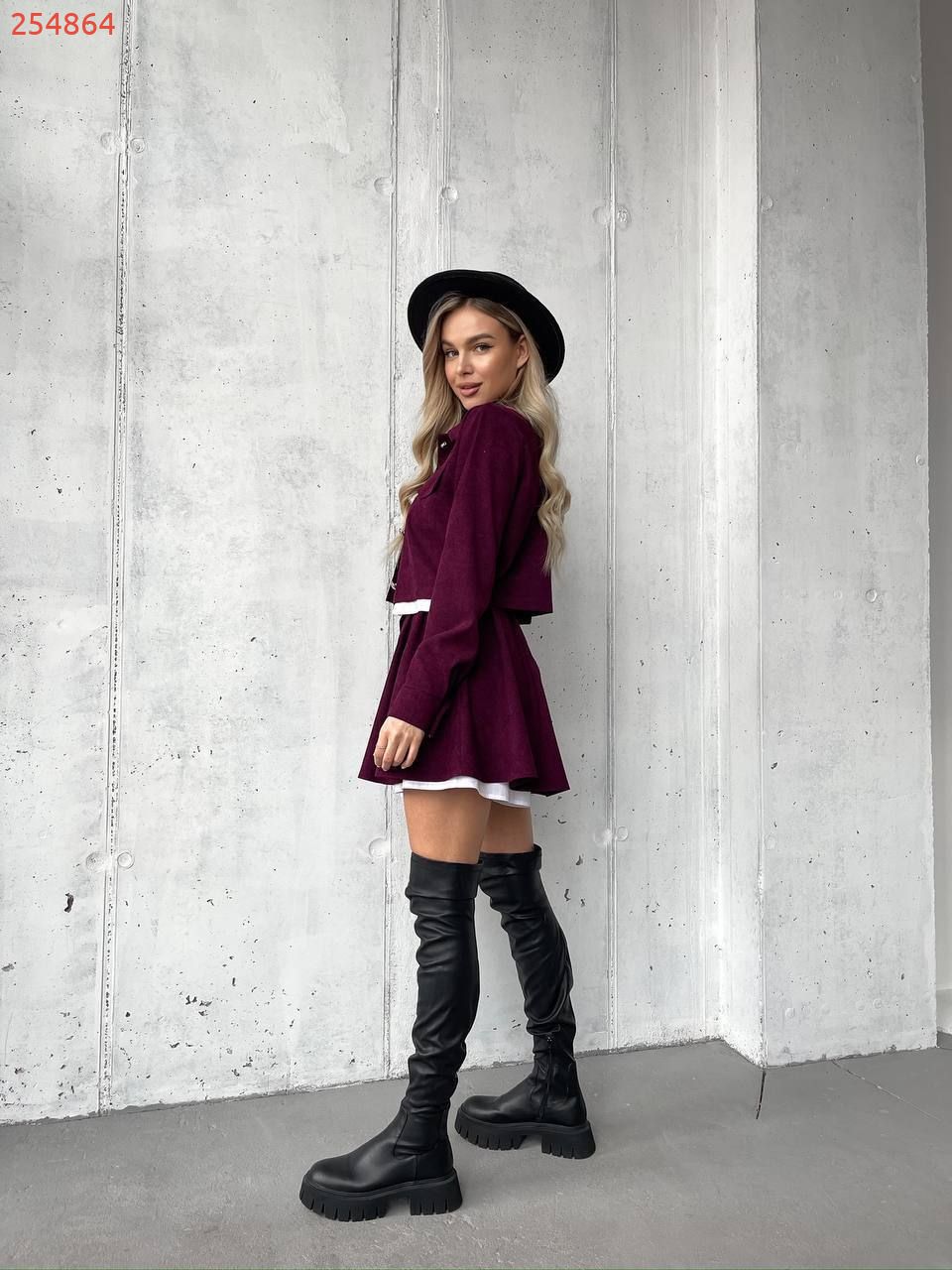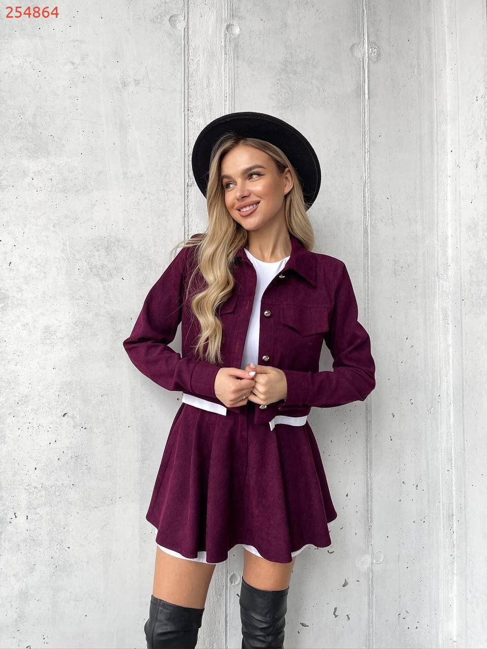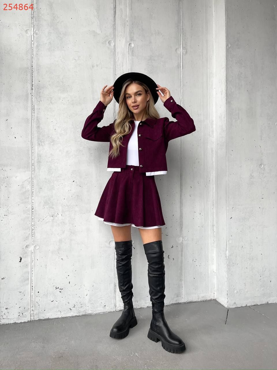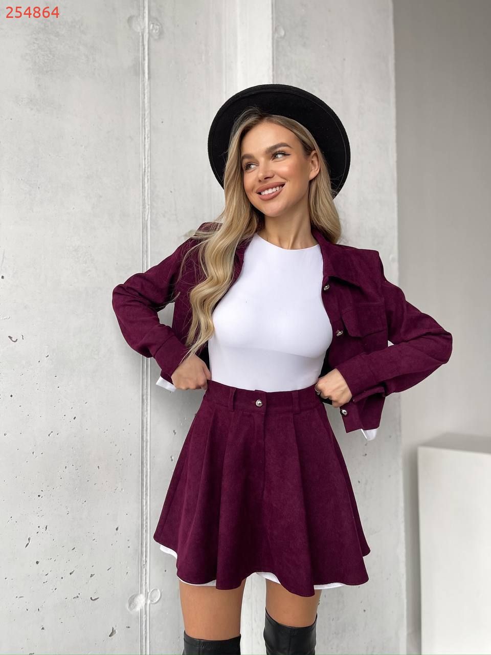 Костюм (жакет та спідниця-шорти) бордо №254864