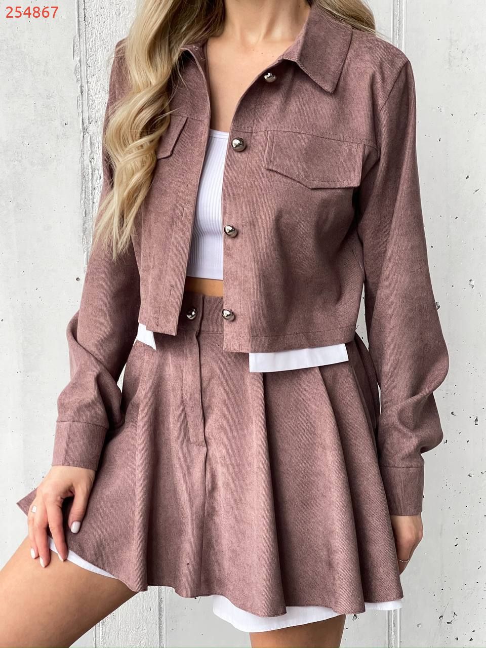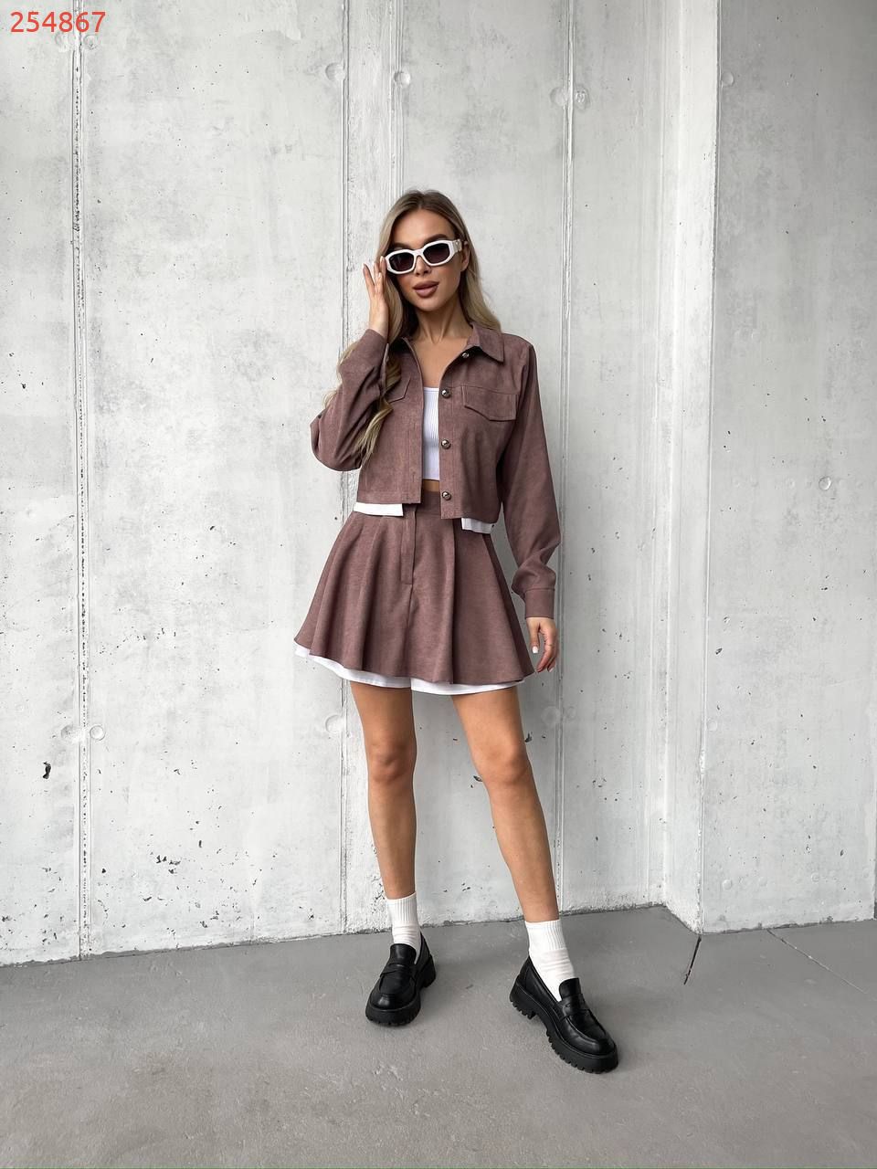 Костюм (жакет та спідниця-шорти) мокко №254867