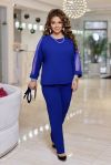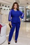 Жіночий комплект двійка, що складається з класичних штанів та блузки. Комплект виконаний з обробкою з сітки . Блузка напівприлеглого силуету. На рукавах є вставки з сітки. Виріз горловини округлий.