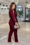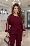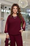 Жіночий комплект двійка, що складається з класичних штанів та блузки. Комплект виконаний з обробкою з сітки . Блузка напівприлеглого силуету. На рукавах є вставки з сітки. Виріз горловини округлий.