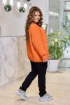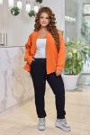 Жіночий комплект-двійка, що складається з жакету та штанів, які можна носити окремо один від одного, доповнюючи іншими предметами гардеробу. Жакет вільний, без підкладки та застібки. Крій легкий, що зберігає обсяг виробу. Рукав-реглан з манжетою по низу. Костюм комфортний у носінні на кожен день, створює жіночний та елегантний образ. Світла базова блуза або гольф освіжає комплект і додає потрібний контраст у верхній частині образу.