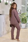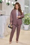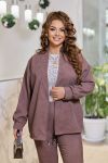 Жіночий комплект-двійка, що складається з жакету та штанів, які можна носити окремо один від одного, доповнюючи іншими предметами гардеробу. Жакет вільний, без підкладки та застібки. Крій легкий, що зберігає обсяг виробу. Рукав-реглан з манжетою по низу. Костюм комфортний у носінні на кожен день, створює жіночний та елегантний образ. Світла базова блуза або гольф освіжає комплект і додає потрібний контраст у верхній частині образу.