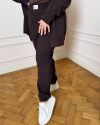 Стильний прогулянковий костюм із мікровельвету: Сорочка вільного крою на гудзиказ, з робочими кишенями + джогери з високою посадкою з кишенями у бічних швах. На поясі та знизу на гумці.