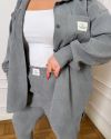 Стильний прогулянковий костюм із мікровельвету: Сорочка вільного крою на гудзиказ, з робочими кишенями + джогери з високою посадкою з кишенями у бічних швах. На поясі та знизу на гумці.