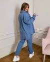 Стильний прогулянковий костюм із мікровельвету: Сорочка вільного крою на гудзиказ, з робочими кишенями + джогери з високою посадкою з кишенями у бічних швах. На поясі та знизу на гумці.