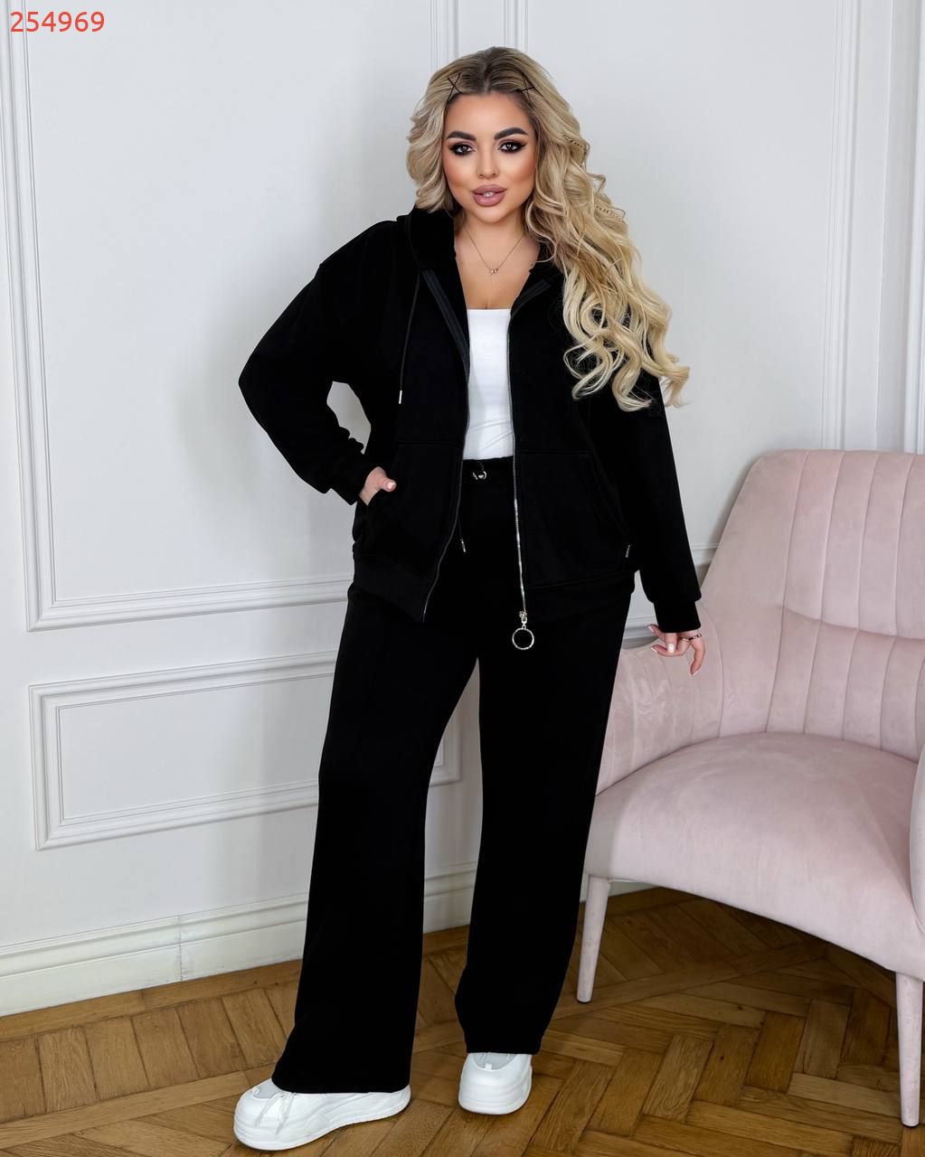 Спортивний костюм на змійці із петлі Хб Турція ( Кофта на змійці «худі» з підвійним капюшоном. Штани прямі, трохи розширені донизу, з кишенями у бокових швах, з високою посадкою на талії, пояс на гумці.