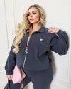кофта на змійці з кішенями, по низу фіксатор з утяжкою + штани прямі до низу розширені , з посадкою вище середнього. На поясі гумка.