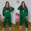 Довжина штанів : 107 см. Штани з високою посадкою , пояс на гумці , бічні кишені , бічні ломпаси , низ на манжеті . Кофта прямого покрою на манжеті , з нашивкою , рукава з ломпасом .