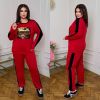 Довжина штанів : 107 см. Штани з високою посадкою , пояс на гумці , бічні кишені , бічні ломпаси , низ на манжеті . Кофта прямого покрою на манжеті , з нашивкою , рукава з ломпасом .