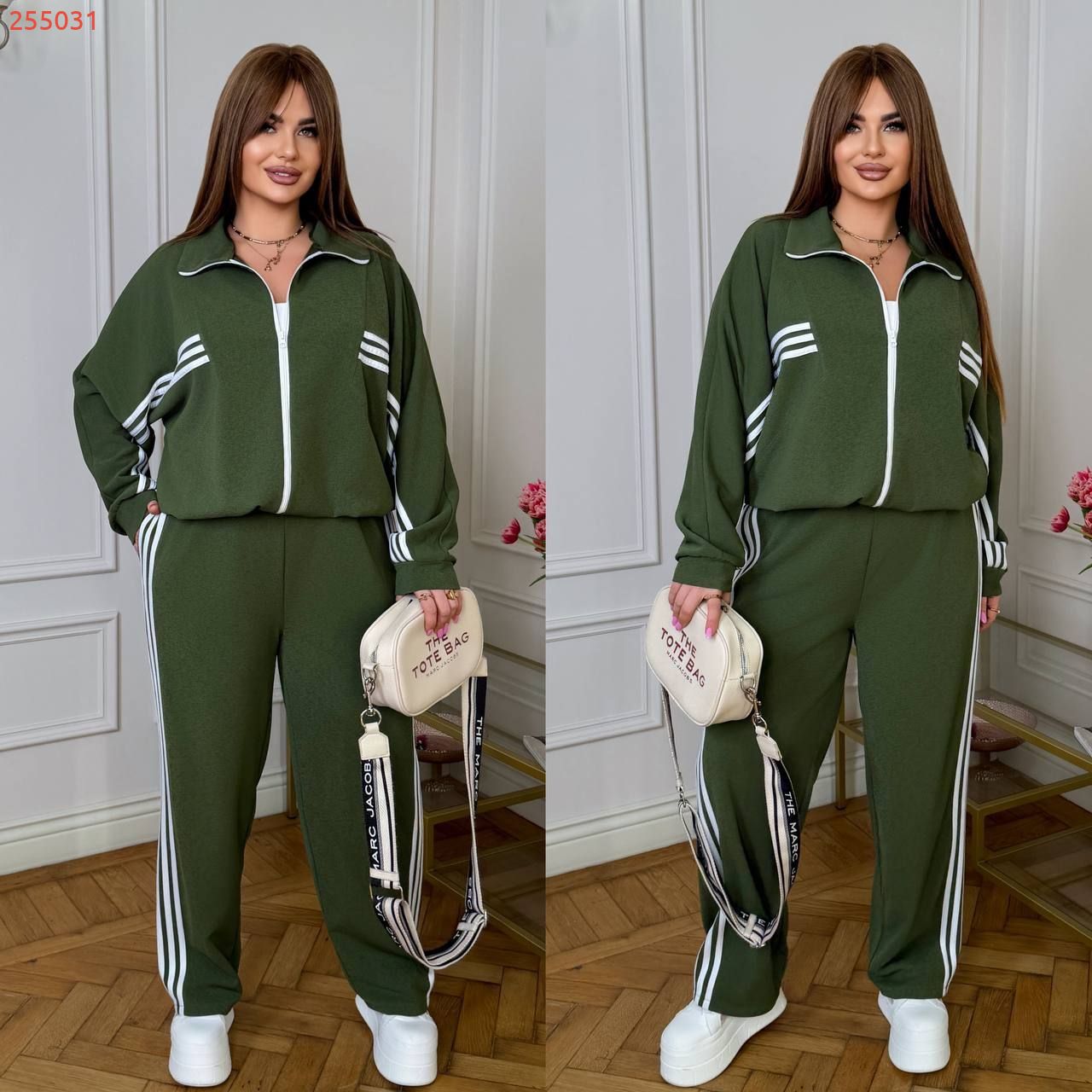 Довжина штанів : 107 см. Штани з високою посадкою , пояс на гумці , бічні кишені , бічні ломпаси . Кофта