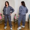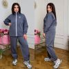 Довжина штанів : 108 см Штани з високою посадкою , пояс на гумці , бічні кишені , низ на гумці . Кофта прямого покрою з кишенями , з коміром стійка , на блискавці , низ на фіксаторі , рукав на гумці .