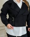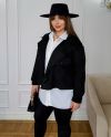 Модель прямого силуету з асиметричною застібкою та кишенею на кнопці. Рукави у формі ліхтарика. Об'ємну куртку можна спокійно одягнути з будь-якою річчю, навіть худі, рубашка або оверсайз светр.