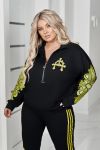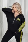 Кофтинка вільного покрою зі стійкою комірцем — зручна та сучасна. Модель декорована аплікацією з тканини, оздобленою стразами DMS, що додає образу яскравого та стильного акценту. Рукава прикрашені апплікацією, яка підкреслюють спортивний модний та сучасний стиль.