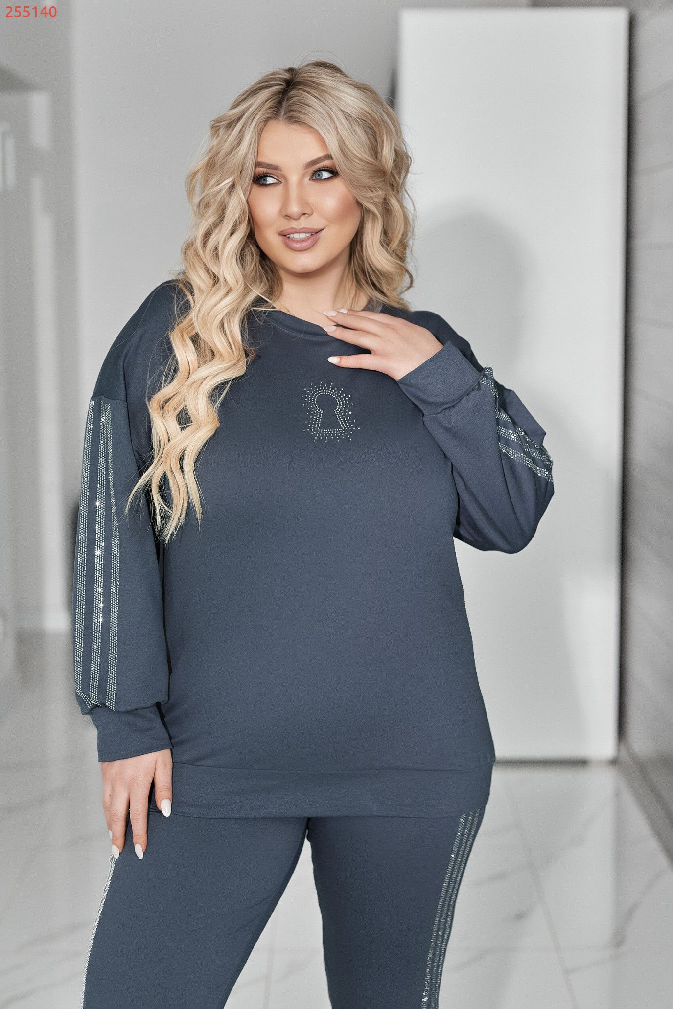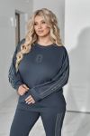 Комфортний та ефектний костюм із двухнитки чудової якості, прикрашений лампасами та візерунком " замок" зі страз.