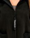 Демісезонне пальто з кашеміру та букле вовни. Виріб вільного силуету, має дві оздобленні кишені з обох боків, з капюшоном, застібка на блискавці, рукав вшивний.