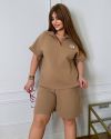 футболка поло у стилі оверсайз + шорти з високою посадкою з кішенями у бічних швах, з куліскою на поясі)