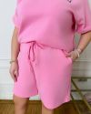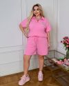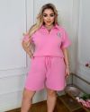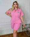футболка поло у стилі оверсайз + шорти з високою посадкою з кішенями у бічних швах, з куліскою на поясі)