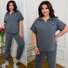 Тканина: трикотаж еластан: футболка поло у стилі оверсайз з Акс + штани з високою посадкою на еластичній гумці, з кишенями в бічних швах, низ штанів на гумці