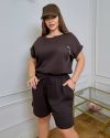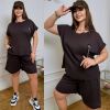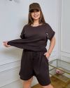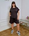 Костюм з трикотажу стрейч «вафелька»: футболка з манжетами на рукавах та Акс + шорти з високою посадкою на гумці, з кішкнями у бічних швах та шнурком на поясі