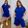 Костюм з трикотажу стрейч «вафелька»: футболка з манжетами на рукавах та Акс + шорти з високою посадкою на гумці, з кішкнями у бічних швах та шнурком на поясі