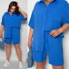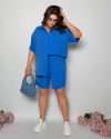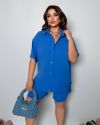 Стильний прогулянковий костюм з креп софту: Сорочка на гудзиках з кишенею , по низу з розрізами по боках + шорти з високою посадкою на гумці, з кишенями у бічних швах