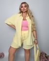 Стильний прогулянковий костюм з креп софту: Сорочка на гудзиках з кишенею , по низу з розрізами по боках + шорти з високою посадкою на гумці, з кишенями у бічних швах