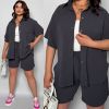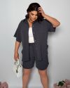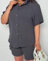 Стильний прогулянковий костюм з креп софту: Сорочка на гудзиках з кишенею , по низу з розрізами по боках + шорти з високою посадкою на гумці, з кишенями у бічних швах