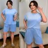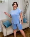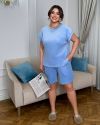 велюровый костюм у піжамному стилі: футболка з манжетами на рукавах та кішенею + шорти з високою посадкою на гумці, з кішкнями у бічних швах та шнурком на поясі