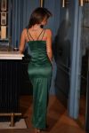 Атласна сукня на бретелях з ефектним розрізом на нозі. Найтоповіша модель вже не перший сезон.