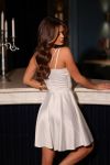 Атласна сукня з довжиною вище колін, розкльошеною спідницею «сонце», з подвійними брителями