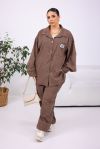 Стильний костюм з оверсайс сорочки на ґудзиках та джокерів на широкому поясі