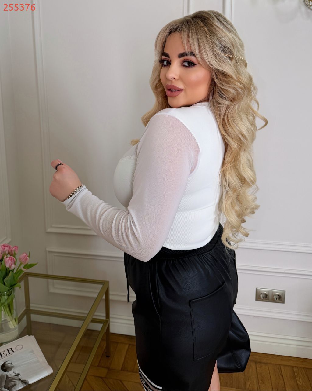 Базовий лонгслів із декоративними рельєфами по грудях. Верх лонга і рукова виконаний якісною стрейч сіткою