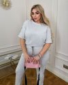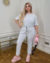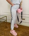 Весняно-літній костюм, футболка + штани, футболка з коротким рукавом і лампасами по рукавах. Штани джогери з кишенями на гумці, в поясі є шнурок, внизу манжета, лампаси з боків