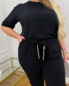 Весняно-літній костюм, футболка + штани, футболка з коротким рукавом і лампасами по рукавах. Штани джогери з кишенями на гумці, в поясі є шнурок, внизу манжета, лампаси з боків