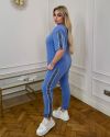 Весняно-літній костюм, футболка + штани, футболка з коротким рукавом і лампасами по рукавах. Штани джогери з кишенями на гумці, в поясі є шнурок, внизу манжета, лампаси з боків