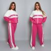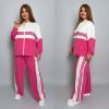Довжина штанів : 106 см Штани з ломпасом , з високою посадкою , пояс на гумці , бічні кишені . Кофта прямого покрою , з ломпасом , низ на фіксаторі , на блискавці .