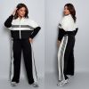 Довжина штанів : 106 см Штани з ломпасом , з високою посадкою , пояс на гумці , бічні кишені . Кофта прямого покрою , з ломпасом , низ на фіксаторі , на блискавці .