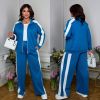Стильний костюм трійка : кофта + футболка + штани . Футболка прямого покрою , кофта на блискавці , рукав з ломпасом . Штани з ломпасом , високою посадкою , пояс на гумці , з бічними кишенями .
