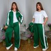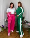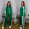 Стильний костюм трійка : кофта + футболка + штани . Футболка прямого покрою , кофта на блискавці , рукав з ломпасом . Штани з ломпасом , високою посадкою , пояс на гумці , з бічними кишенями .