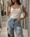 Базовий топ пуш- ап на перехресних бретелях з написом